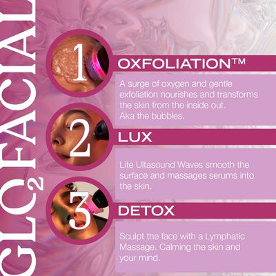 The Glo2Facial is a cutting-edge skin treatment that uses patented Oxfoliation™ technology. This process gently exfoliates the skin using natural ingredients from OxyPods and Primer Gel, creating a CO₂-rich environment on the skin’s surface. Your body responds by sending a surge of oxygen-rich blood to the area—naturally boosting oxygenation, enhancing absorption of active ingredients, and triggering visible skin renewal.